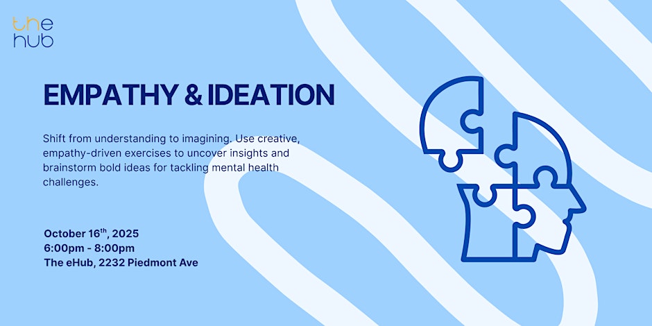 This October, the eHub turns its energy toward one of the most pressing challenges students face: mental health. Over four weeks, you’ll join peers who care about the same problem, sharpen your human-centered design skills, and move from identifying barriers to experimenting with real solutions. Each session includes dinner, social time, and hands-on activities — no prior attendance required. And if your ideas show promise, a psychology professor is ready to mentor groups that want to take them further.
